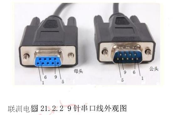 RS-232C 還有一種 9 針的非標準連接器接口,簡稱 DB9。串口通信使用的大多都是 DB9 接口。DB25和DB9 接頭有公頭和母頭之分,其中帶針狀的接頭是公頭,而帶孔狀的接頭是母頭。9 針串口線的外觀圖如圖 21.2.2 所示: