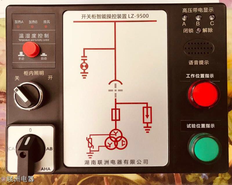 開關柜智能操控裝置是一種多功能、智能化模擬動態指示裝置。用于3一35kv戶內開關柜,適用于中置柜、手車柜、固定柜、環網柜等多種開關柜。可取代現有的一次回路模擬、帶電顯示器、自動加熱除濕控制器具備了斷路器分合閘狀態指示、儲能指示、接地開關指示、手車位置指示、智能防誤語音、及RS485 通信接口等多項功能。配有拒內照明開關、儲能開關、遠程本地轉換開關、斷路器分合閘轉換開關。