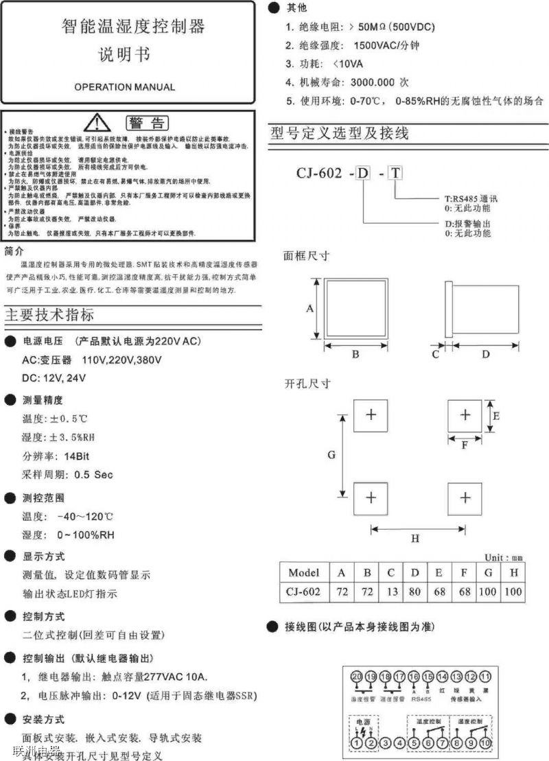 ●測控范圍:溫度:-40~100℃ 濕度:0~100%H