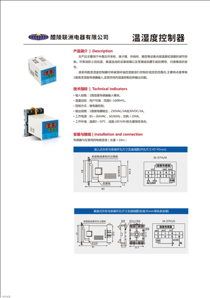 ■ 控制輸出:1倍工作電壓,額定功率阻性負載AC220V/3A×2(有源輸出)。