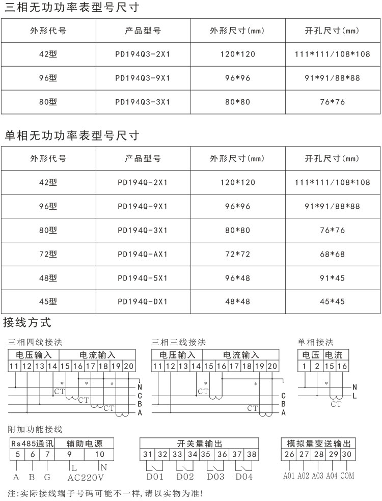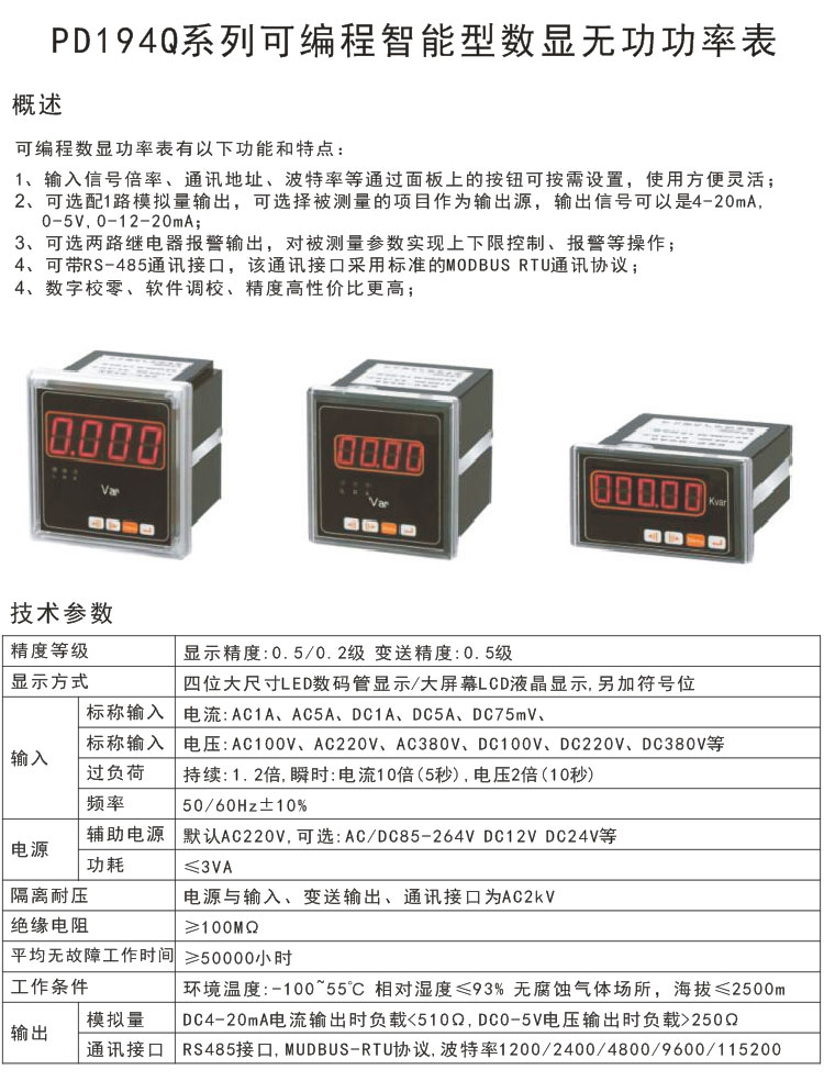 PD194P-9X1、PD194P-5X1三相有功功率表 單相有功功率表