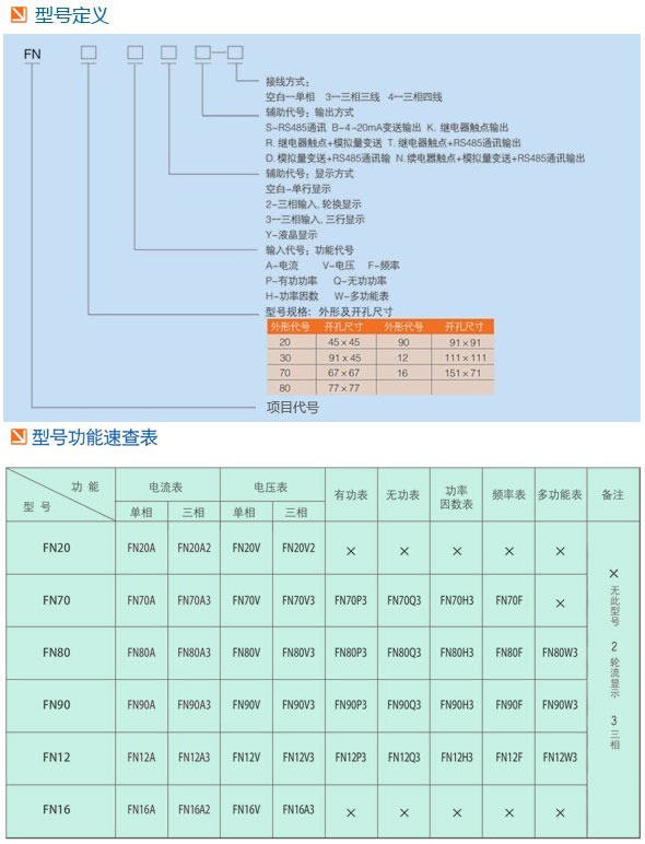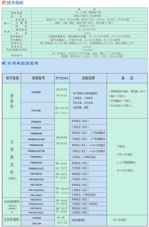 FN90A、FN90A3、FN90V3、FN70A3系列測(cè)控儀表選型